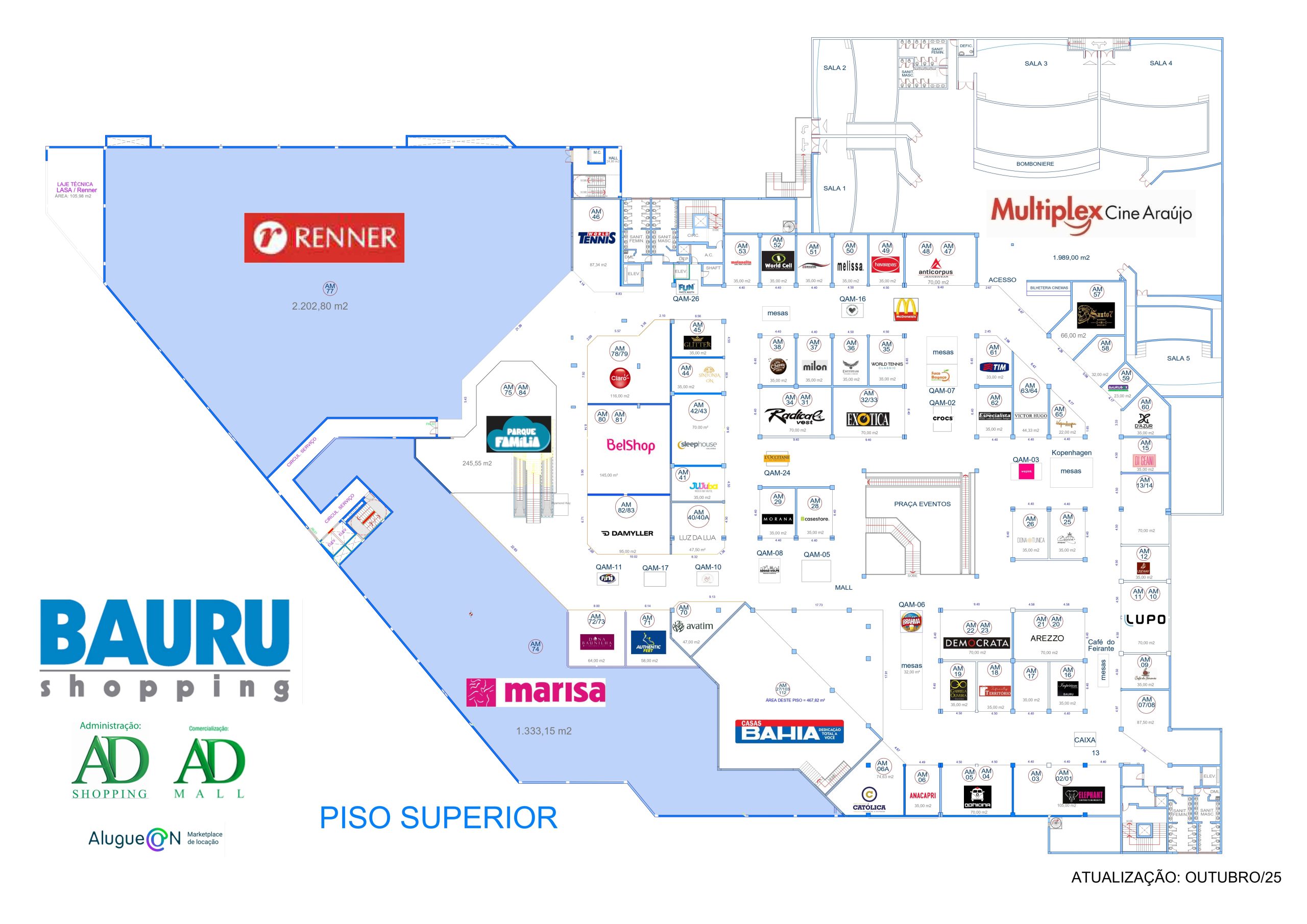 Destaques: C&A, Lojas Americanas, Marisa, Renner, Ri Happy, Hering Store, Hope, Lupo, Arezzo, Carmen Steffens, Havaianas, Le Postiche, O Boticário, L´óccitane, Cia Marítima, Valisere, Chilli Beans, Polishop, M Martan, Claro, Oi, Tim, Vivo, Authentic Feet, Centauro, World Tennis, Kalunga, Track & Field, Kopenhagen, Havaianas, Melissa entre outras.