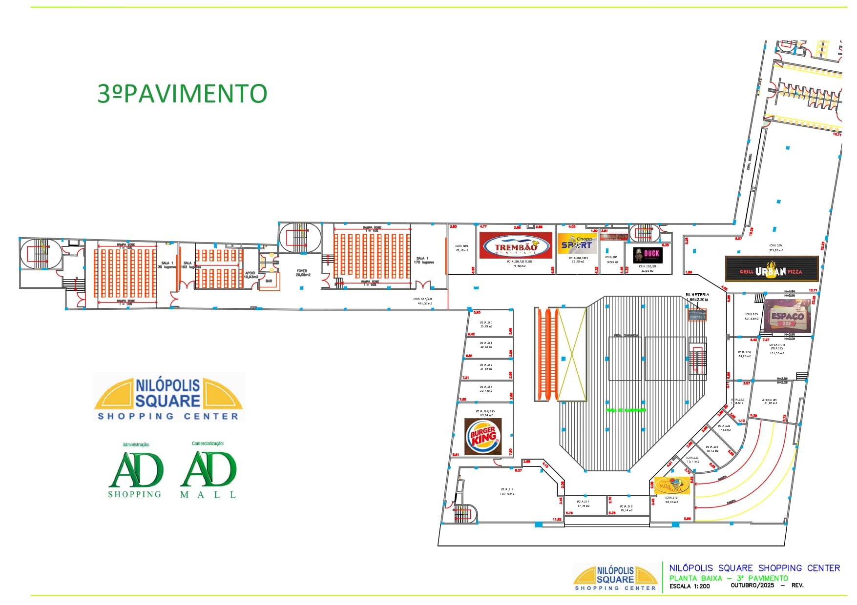 Destaques: Lojas Americanas, South &Co., Casa & Vídeo, Body Laser, Burguer King, Vivo, Sóbrancelhas, O Boticário, Espaço Laser, Cosechas, Clínica Orthopride, Camim, Claro, Espaço Rubro Negro, Banco 24 Horas, Samsung, First Class e Loteria.